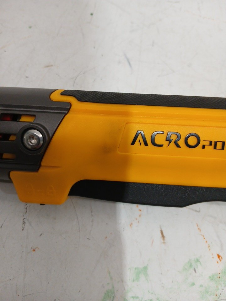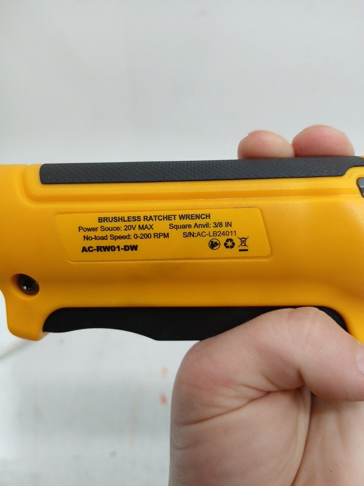 appears new, but there is a light mark present due to shipping without packaging. this wrench uses a 20v dewalt battery.