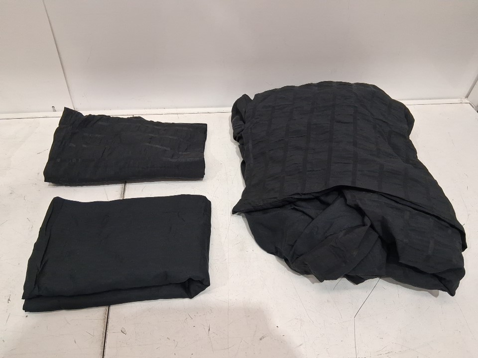 Staff measured the duvet cover to be 76" x 80" which is King size.