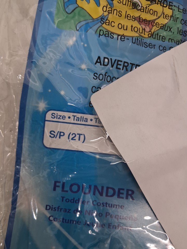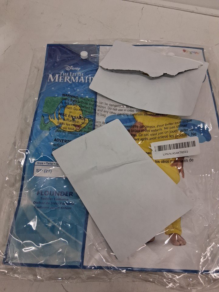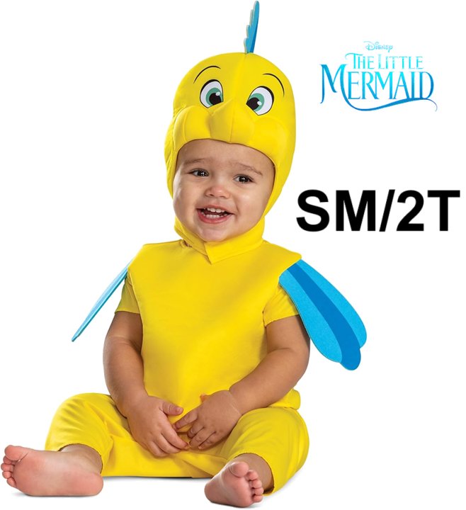 TODDLERS disney the little mermaid classic costume flounder- size small/2t- yellow/blue
