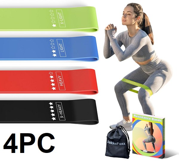 4PC JAKKOFOXX Resistance Loop Exercise Bands - 10LBS-48LBS - green/blue/red/black
