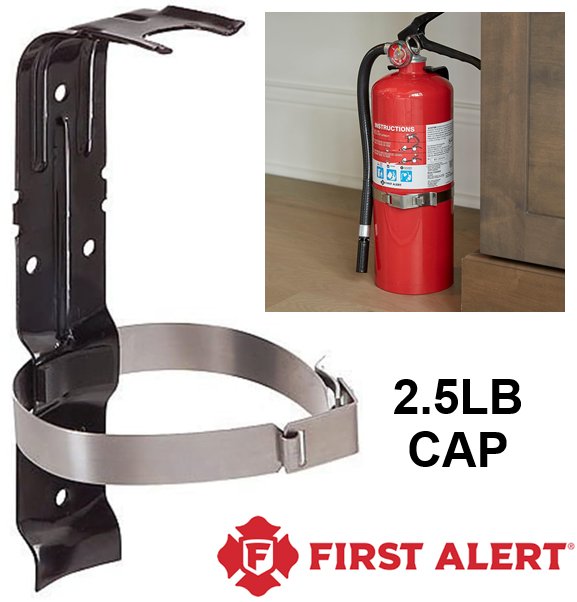 FIRST ALERT Heavy Duty Bracket for Fire Extinguishers - 2.5LBS CAP - BLACK/SILVER (MODEL: BRACKET2)