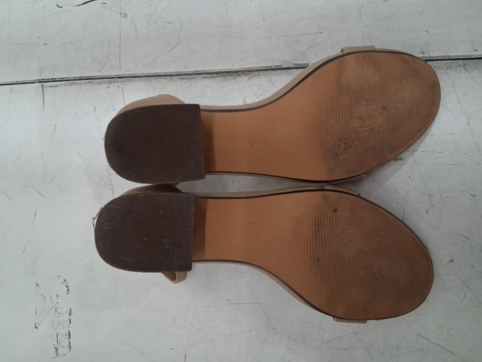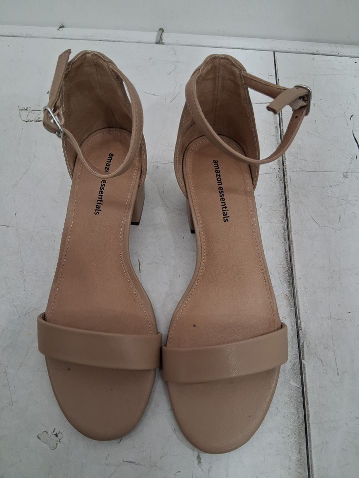 WOMENS' AMAZON ESSENTIALS DOUBLE -STRAP HEELED NOLA SANDALS - SIZE 6 - BEIGE (STYLE: B08LPt267k)