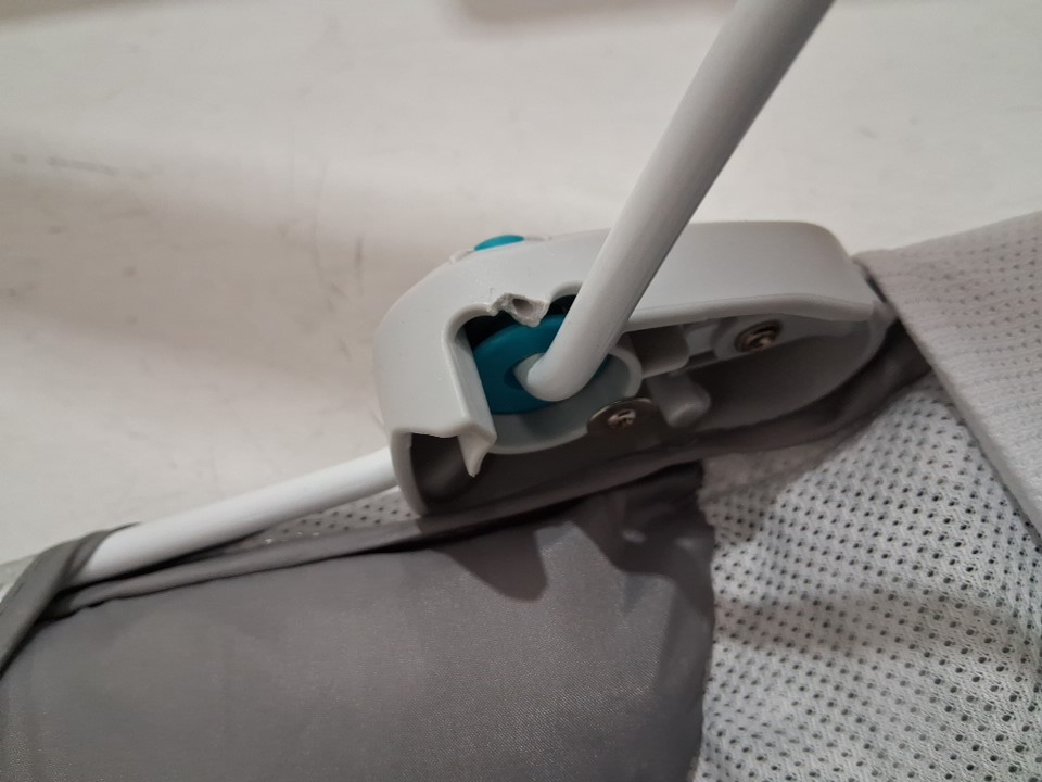 Item has a minor stain, and the back latch is broken but still functions sturdily. See photos.