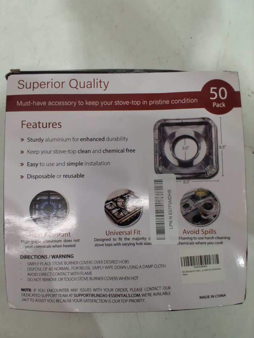 50pk Linda's essentials aluminum stove burner covers for gas burners - 8.5”