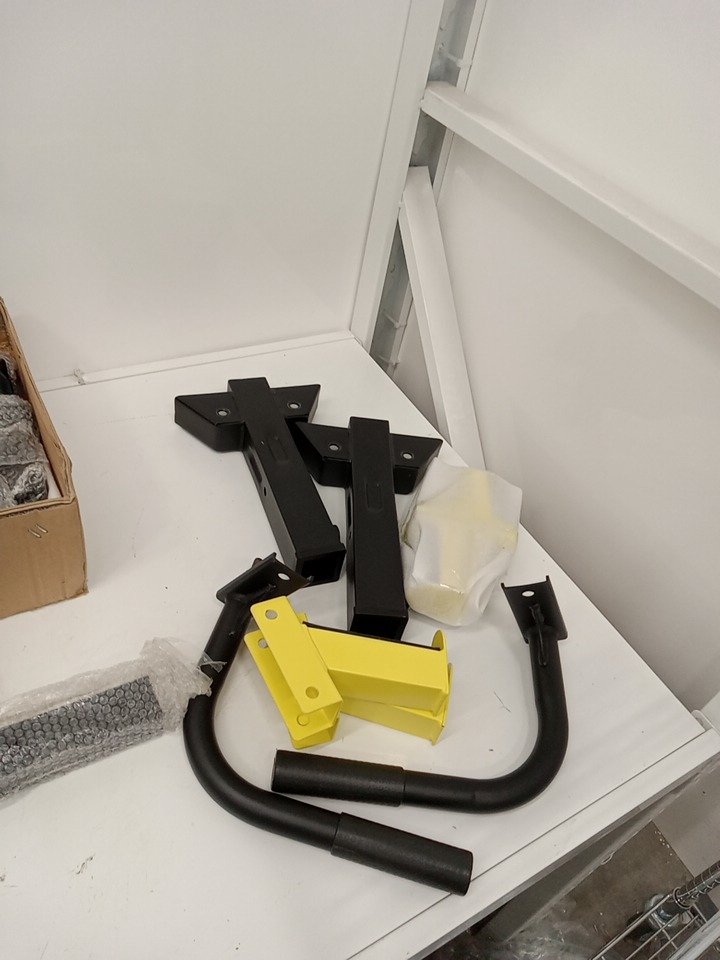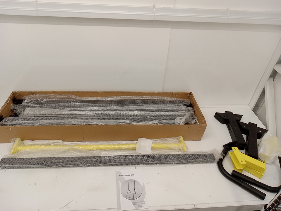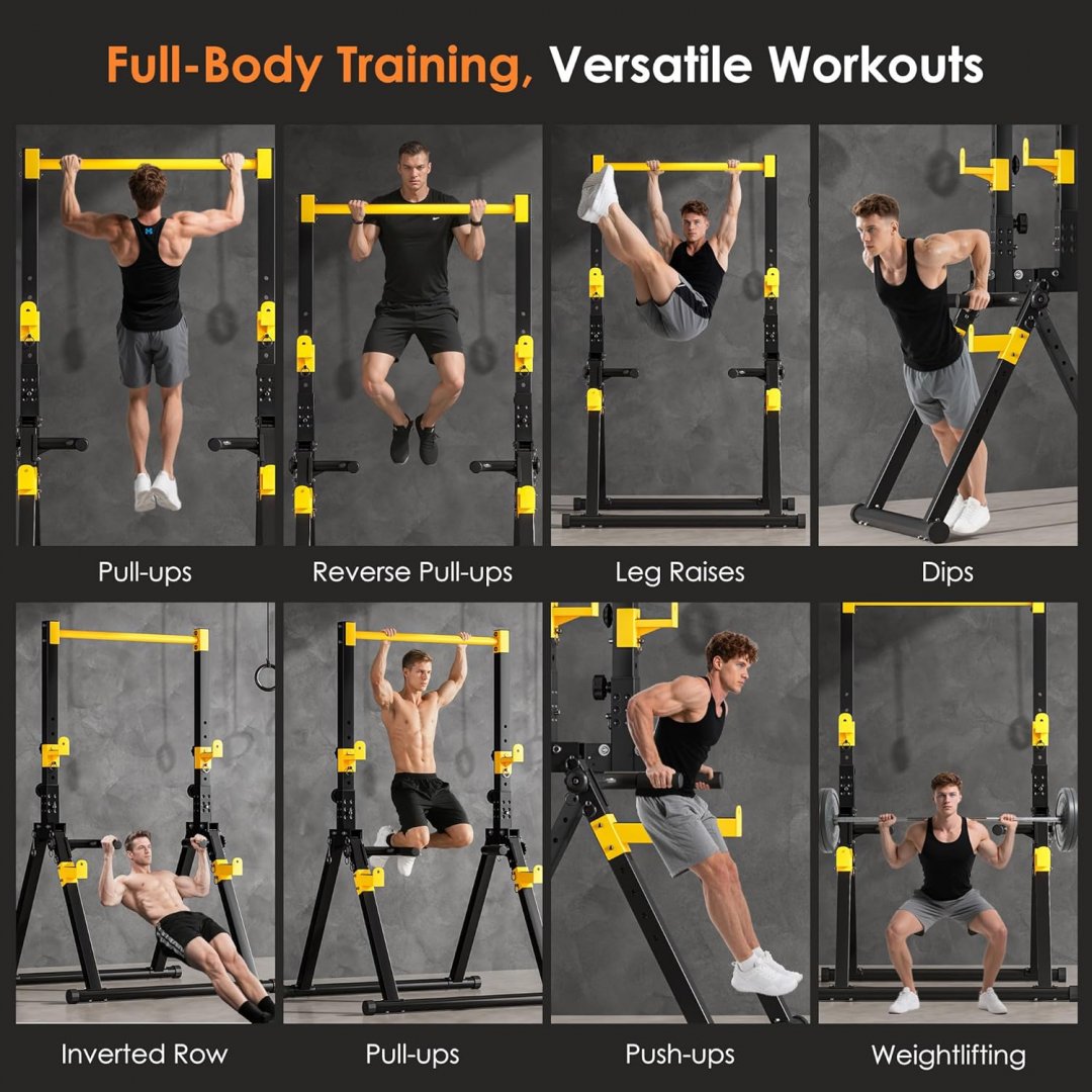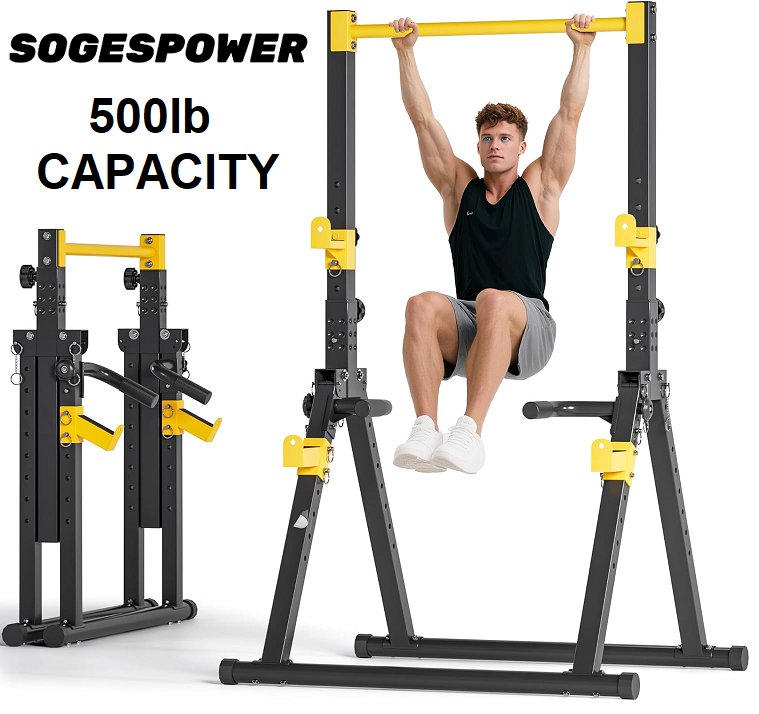 SOGESPOWER TRIANGLULAR STRUCTURED FREESTAND AND FOLDING PULL UP BAR WITH A 500LB CAPACITY - YELLOW (MODEL: ‎40JYHBHB01-Y)