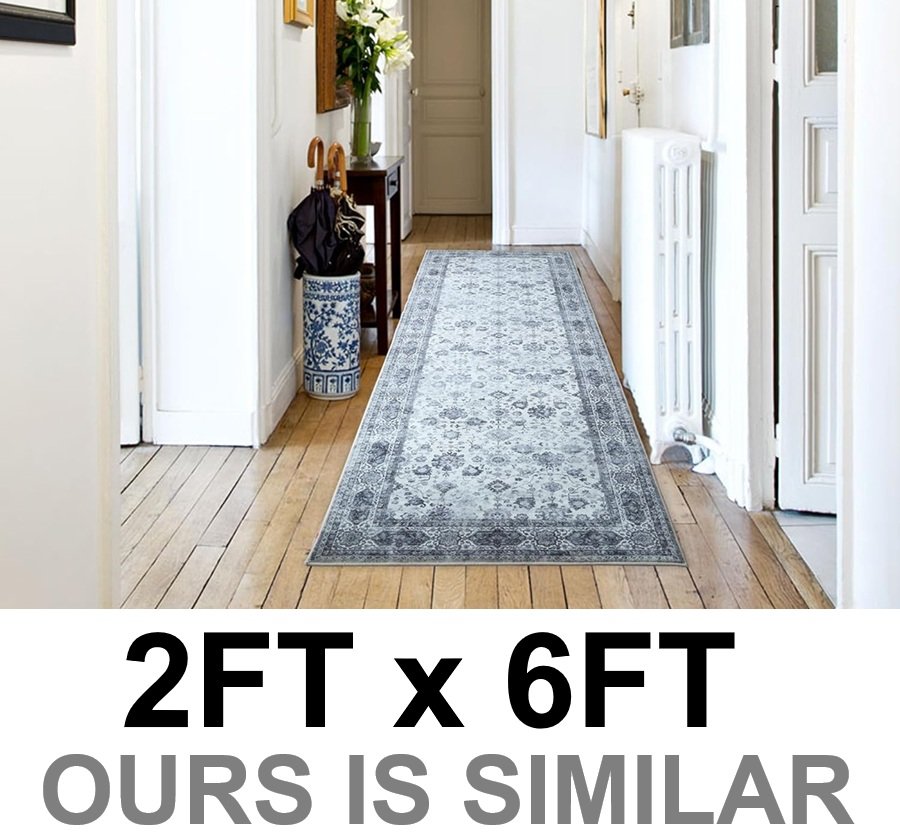 boho design Runner Rug for Hallways Kitchen Non Slip Washable Rugs with Rubber Backing - 2FT x 6FT - white/grey