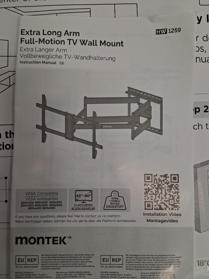 MonTEK Long Arm TV Wall Mount - 43"-90" TVs - Black - (MODEL: HW1259)