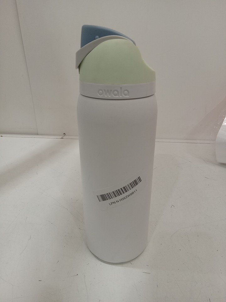 OWALA FREESIP INSULATED LEAK PROOF STAINLESS STEEL water bottle with BUILT IN STRAW - BPA FREE - 24 HOURS COLD - 24oz - white/blue (model: 11296)