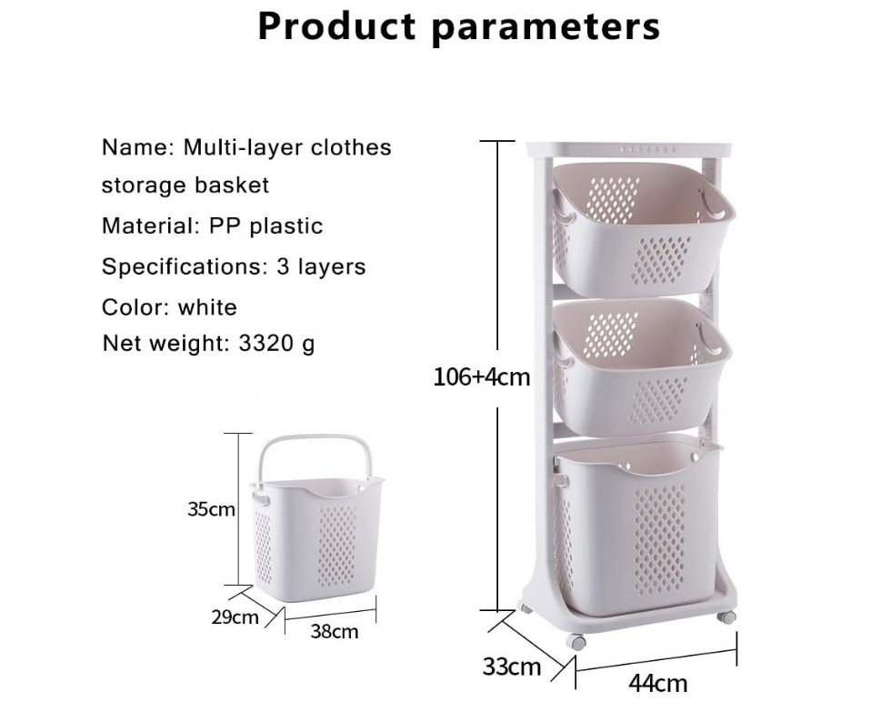 Toyletgo Multi-layer Laundry Basket - 17.3" x 13" x 43.3" - white