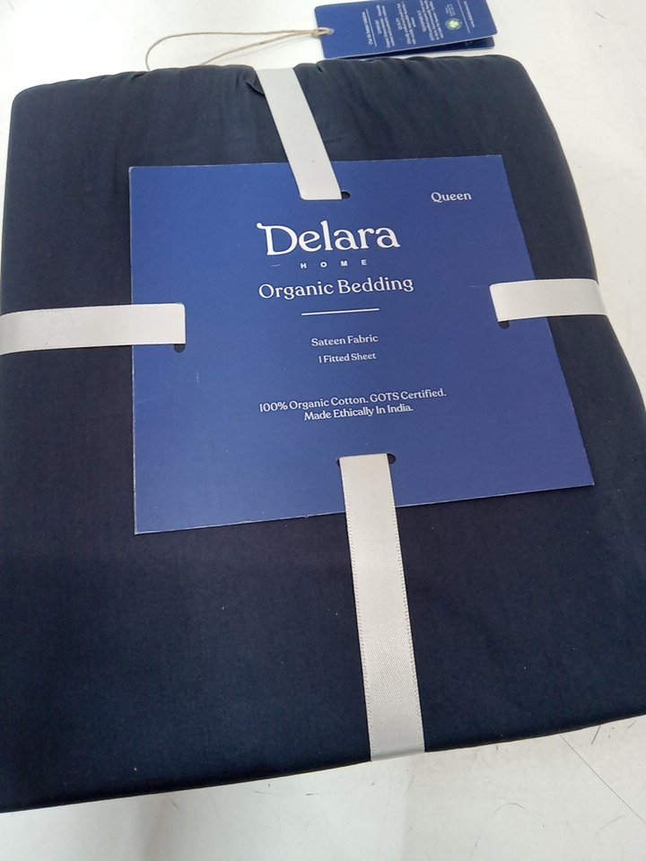 Delara GOTS Certified 100% Organic Cotton Fitted Sheet - QUEEN - NAVY BLUE