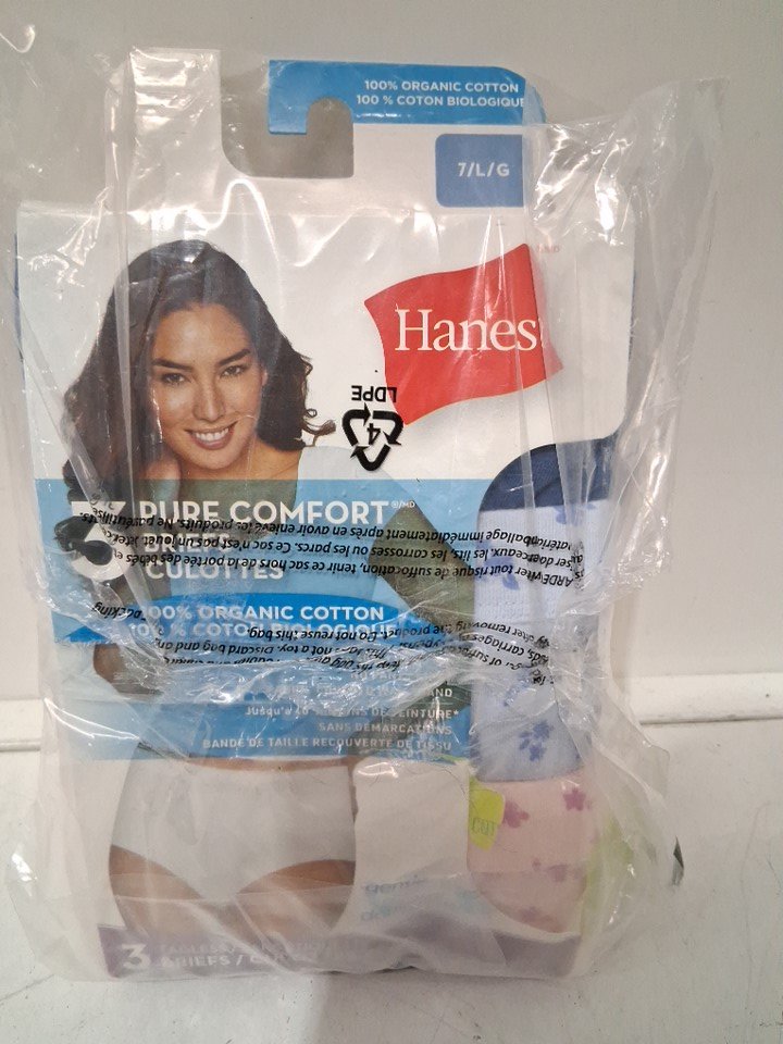 3PK Womens HANES tagless Pure Comfort 100% Organic Cotton Briefs - SIZE 7 / LARGE - assorted