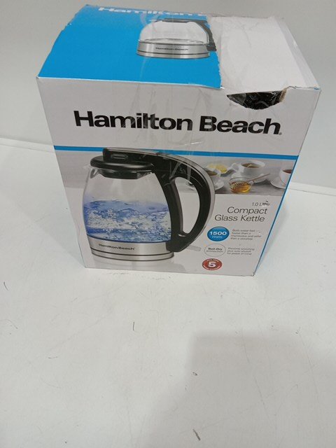HAMILTON BEACH ELECTRIC COMPACT GLASS KETTLE - 1L capacity - BLACK/CHROME (MODEL: 40930/40930C)
