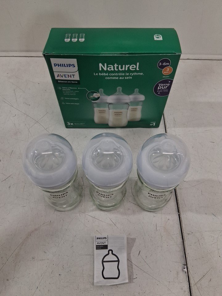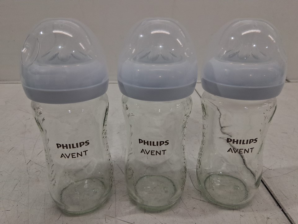 3PK AVENT PHILIPS NATURAL GLASS BOTTLE - bpa free - 8oz/240ml each - clear (model: ‎SCY913/03)