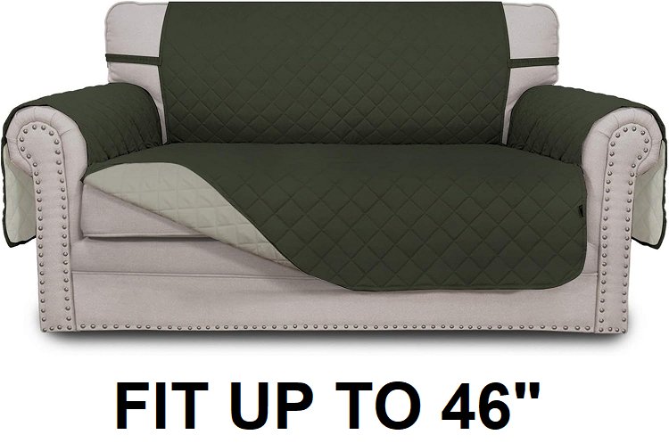 EASY GOING REVERSIBLE SOFA SLIP COVER WITH NON SLIP FOAMS - FOR PETS, KIDS - FITS UP TO 46" - GREEN