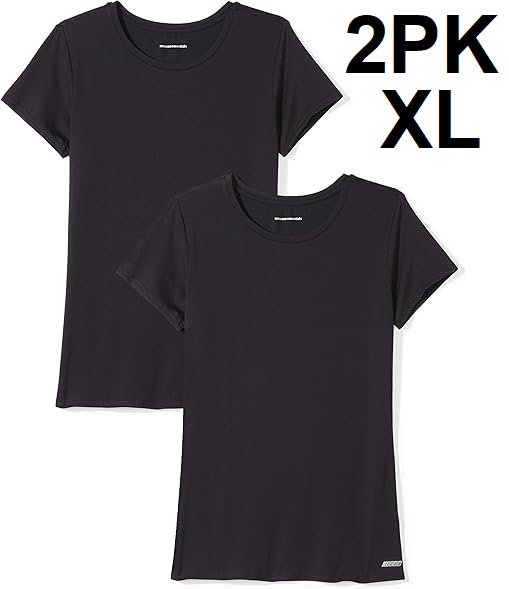 2pk WOMEN'S AMAZON ESSENTIALS Tech Stretch Short Sleeve V Neck T-shirt - extra large - black (STYLE:C241110EF60E)