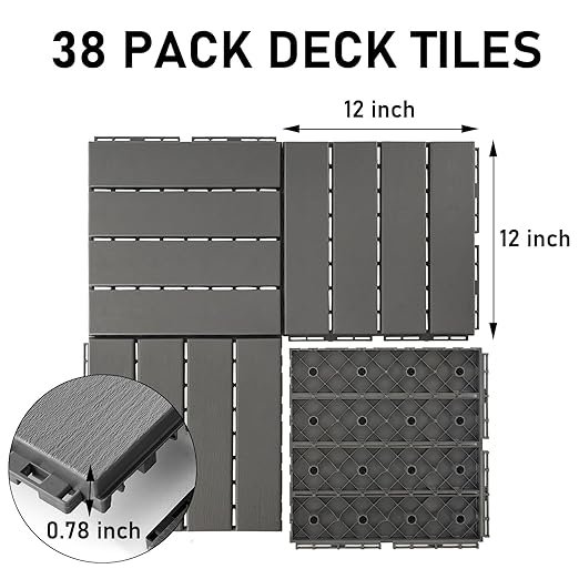 38pk Plastic Interlocking Deck Tiles - 12" x 12" - black