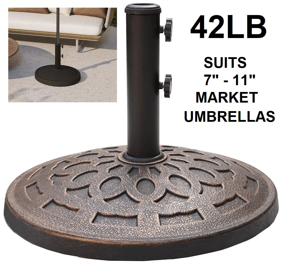 Outsunny Heavy-Duty Patio Umbrella Base Stand with Bronze Finish and Adjustable Side-Tightening Knob Fits 7" - 11" Umbrellas - 42LB - Brown (Model: CHTBR062-19BR)