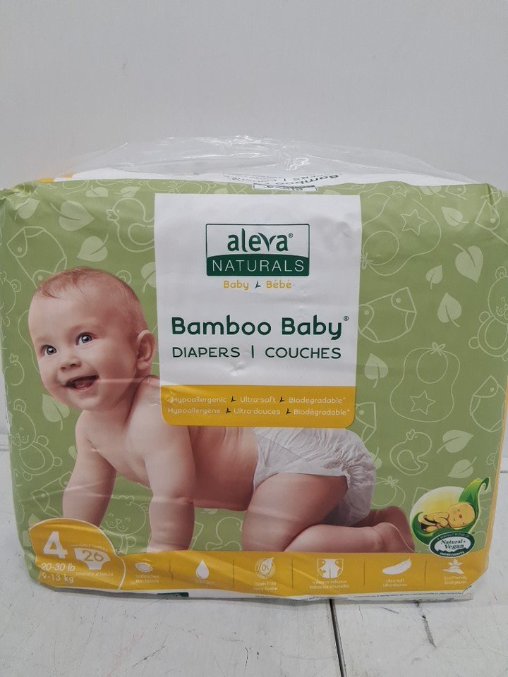 26PK ALEVA naturals hypoallergenic sensitive skin friendly biodegradable bamboo baby diapers - 4 - white (model: 37851)