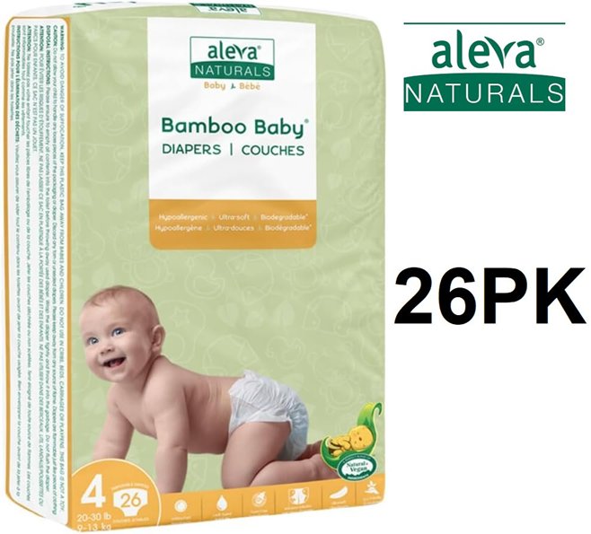 26PK ALEVA naturals hypoallergenic sensitive skin friendly biodegradable bamboo baby diapers - 4 - white (model: 37851)