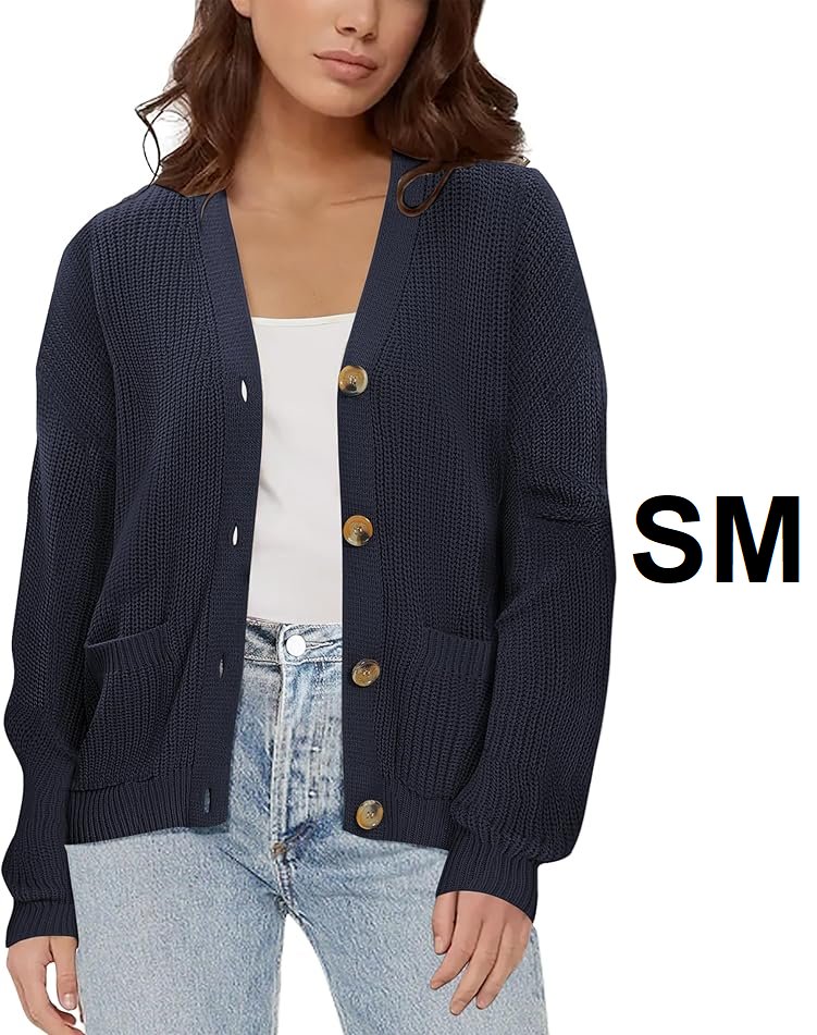 WOMEN's Urban CoCoChunky Knit Open Front V-Neck Long Sleeve Button up cardigan - small - navy blue