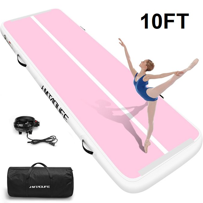 Owromi inflatable Tumble Track Mat for Gymnastics - 10ft x 3ft x 4" - Pink