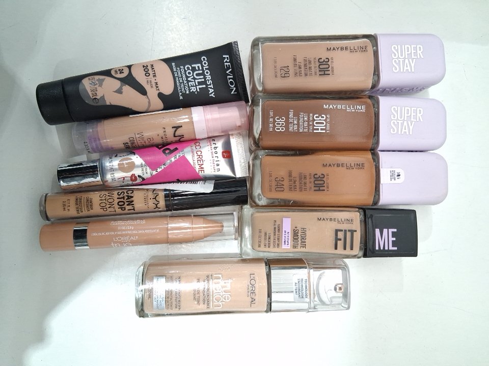 10 ASSORTED FOUNDATION/CONCEALER - ASSORTED COLORS AND BRANDS