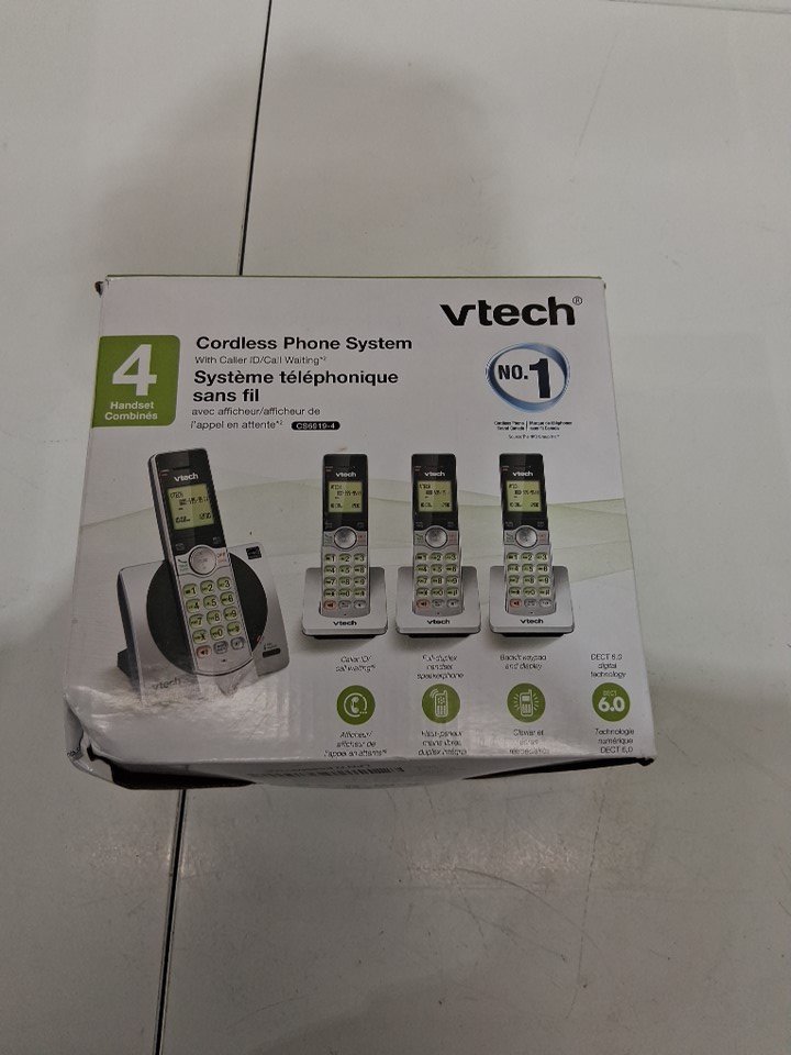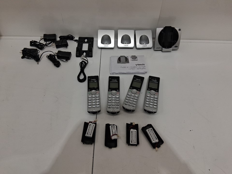 4PK VTECH DECT 6.0 HANDSET CORDLESS PHONES WITH CALLER ID BACKLIT KEYPADS AND SCREENS CALL BLOCK AND SPEAKERPHONES - BLACK/SILVER (MODEL: CS6919-4)