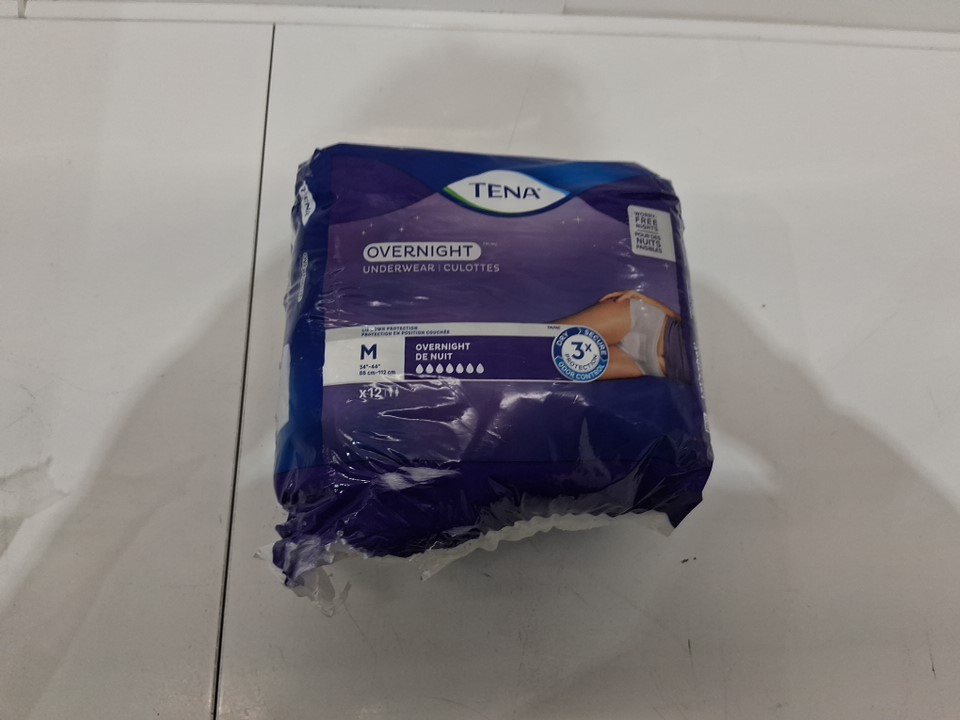 12PK WOMENS' TENA DISPOSABLE OVERNIGHT ABSORBENT UNDERWEAR WITH LIE-DOWN PROTECTION - MEDIUM (34"-44") - WHITE