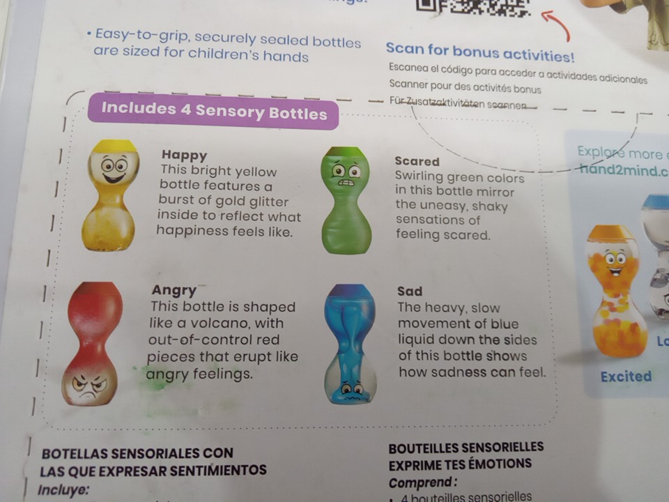 4pk Hand2mind Express Your Feelings Sensory Bottles - red/yellow/blue/green