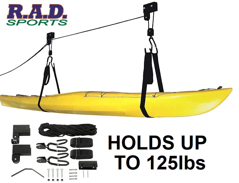 RADD SPORTZ GARAGE GRADE KAYAK HOIST WITH 125lb CAPACITY - BLACK (MODEL: 83-DT5002)