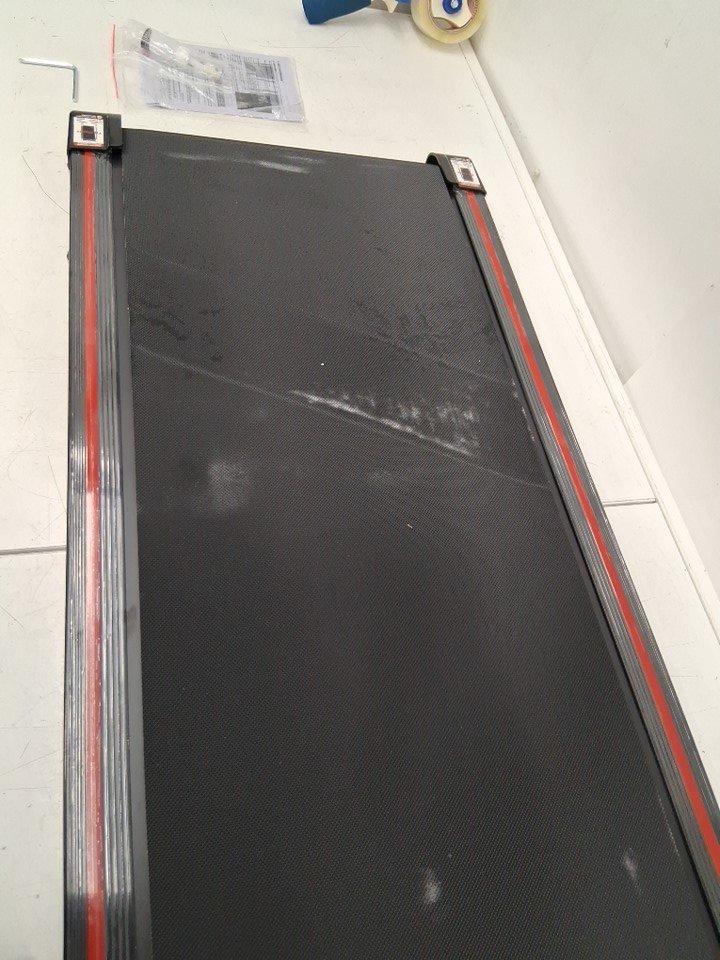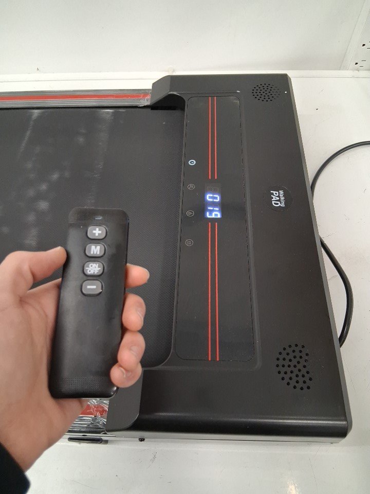 Item and remote were tested for power There are markings/stains/folds on the belt consistent with previous use.