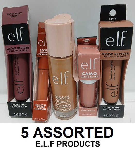 5 ASSORTED E.L.F. PRODUCTS- ASSORTED COLORS AND TYPES