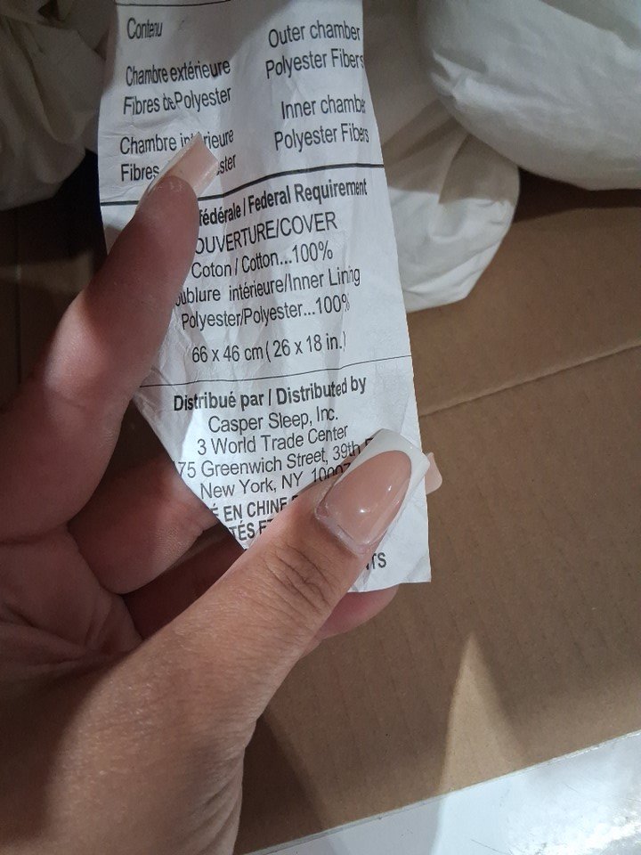 2PK CASPER essential Pillows - STANDARD - 18" x 26" - WHITE (MODEL: 951-000172-001)