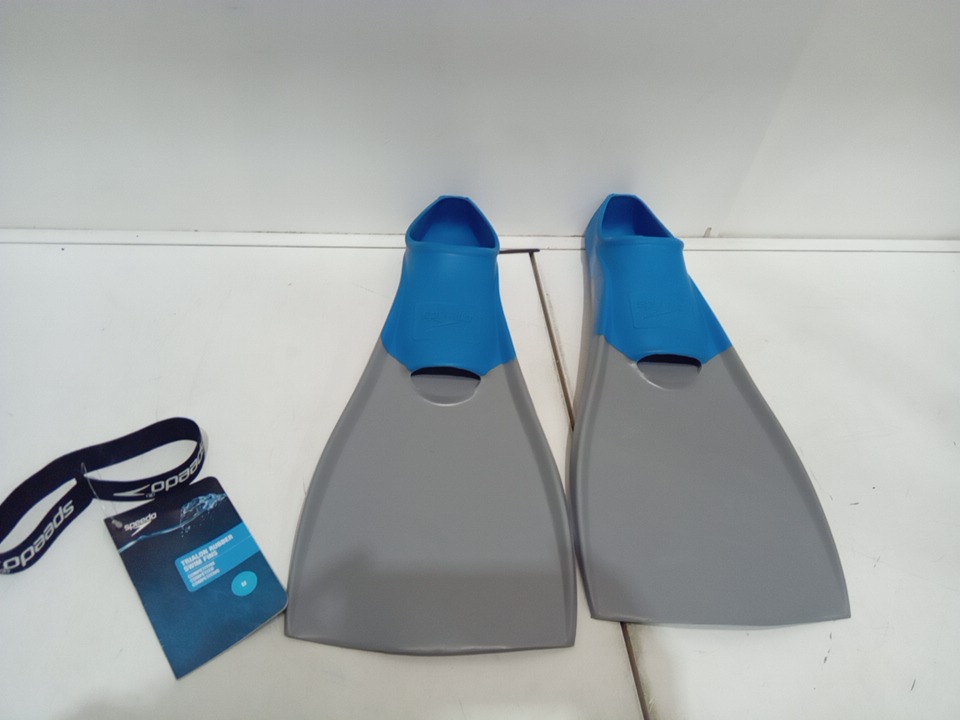 UNISEX ADULT'S SPEEDO COMPETITIVE trialon rubber swim fins - medium (size 7-8) - GREY/blue - (model: 10783)