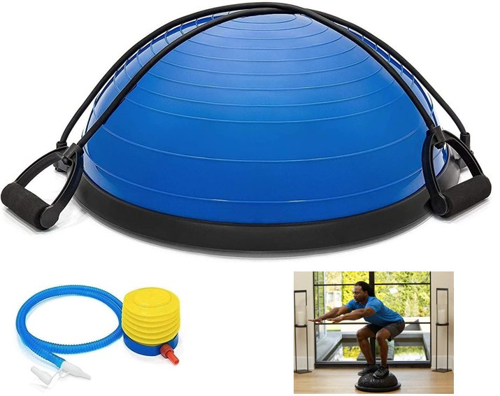 unbranded Half Ball Balance Trainer with resistance bands - 23" - blue