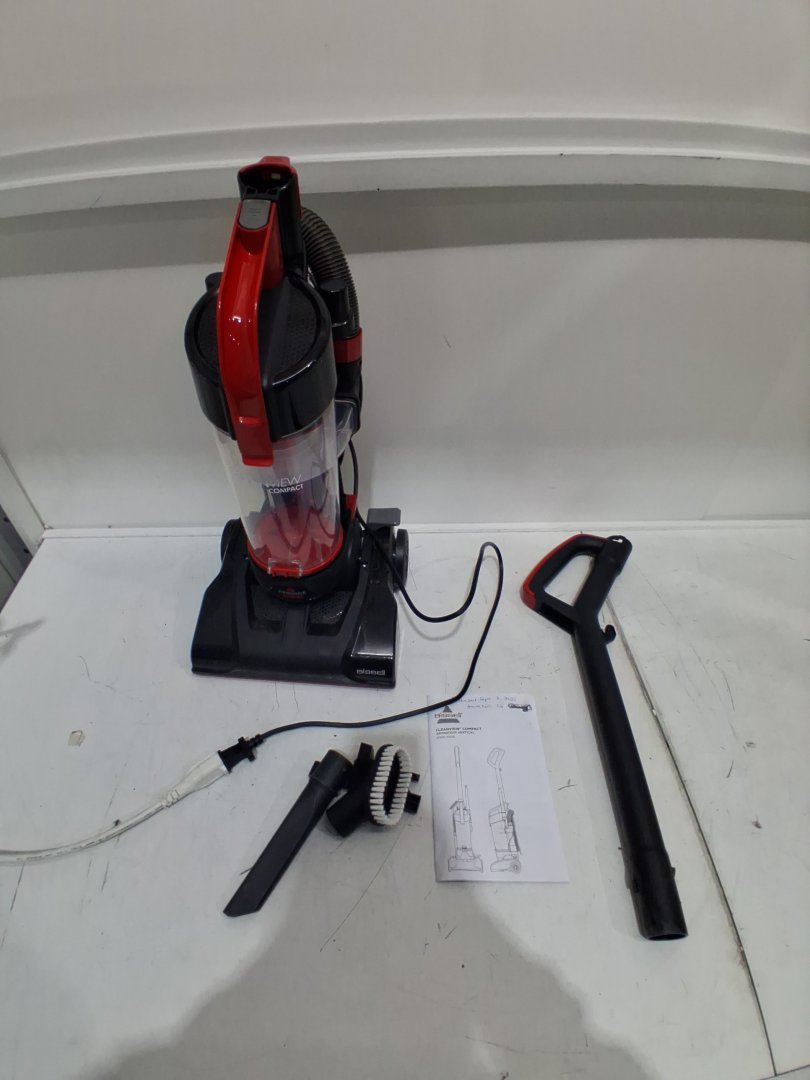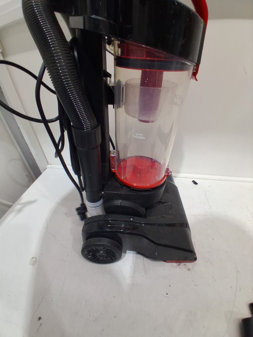 Tested for power, working. Item has dirt/hair on roller brush and in filter. scratches on plastics. Component is broken off on bottom, see photo