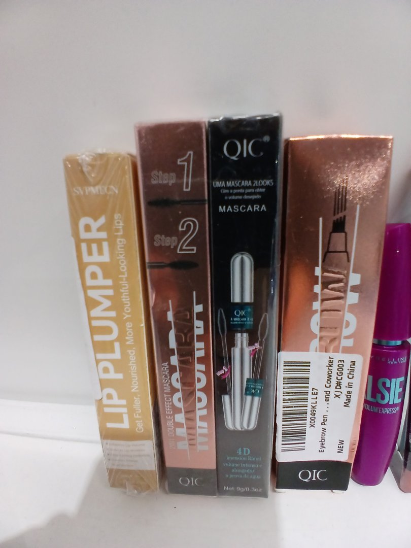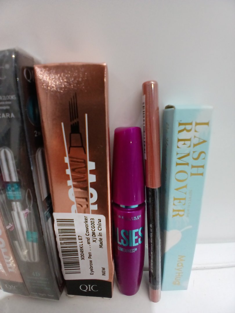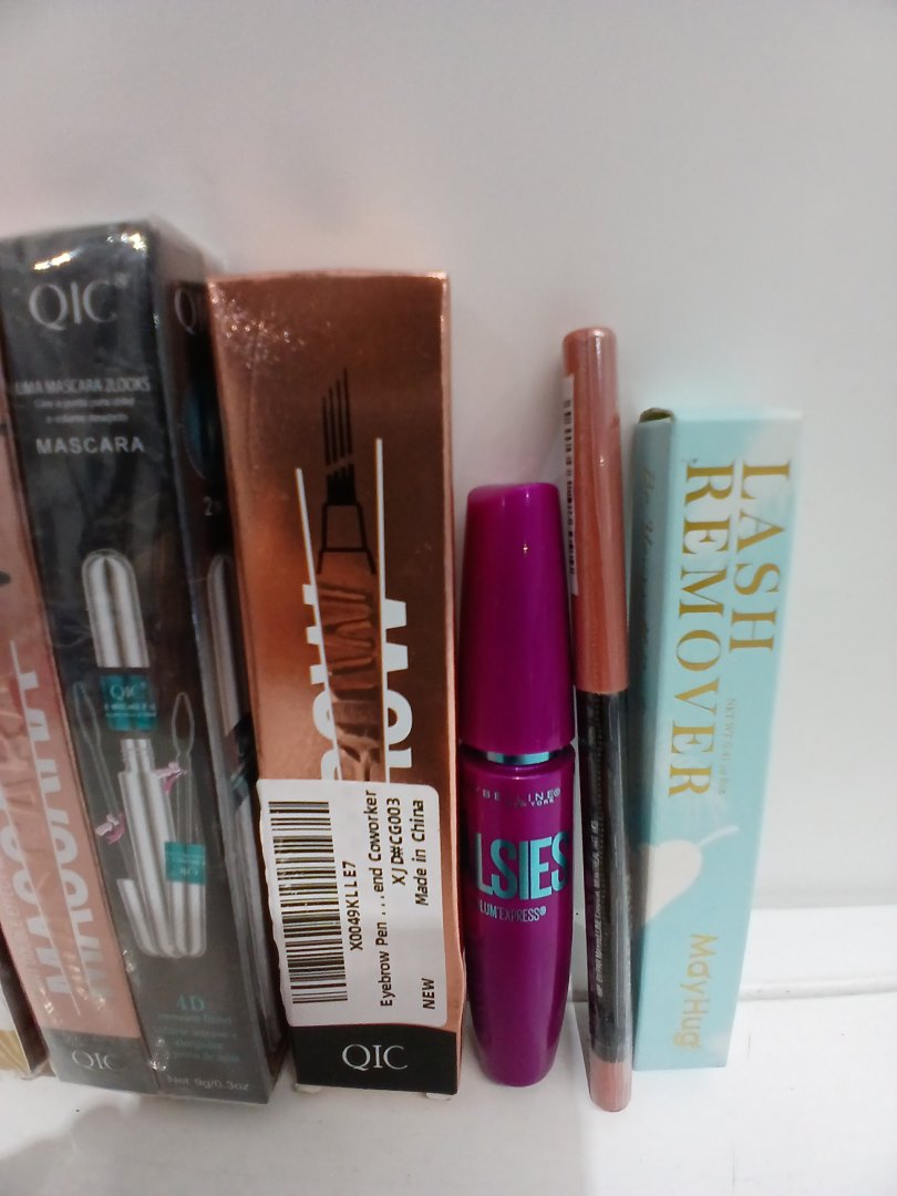 7 ASSORTED MAKEUP - ASSORTED BRANDS - lip liner/eyebrow/ mash remover/ limp plumper/ mascara