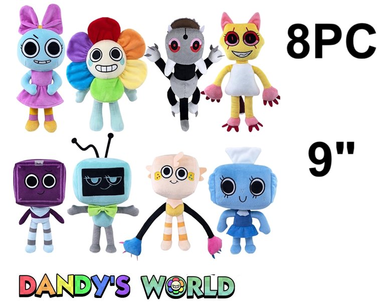 8PC Dandy's World Plushies - Dandy, Goob, Tisha, Vee, Poppy, Boxing, Scrap, Pebble - 9" - Multicolor (Model: ‎JZHZ-8ADE)