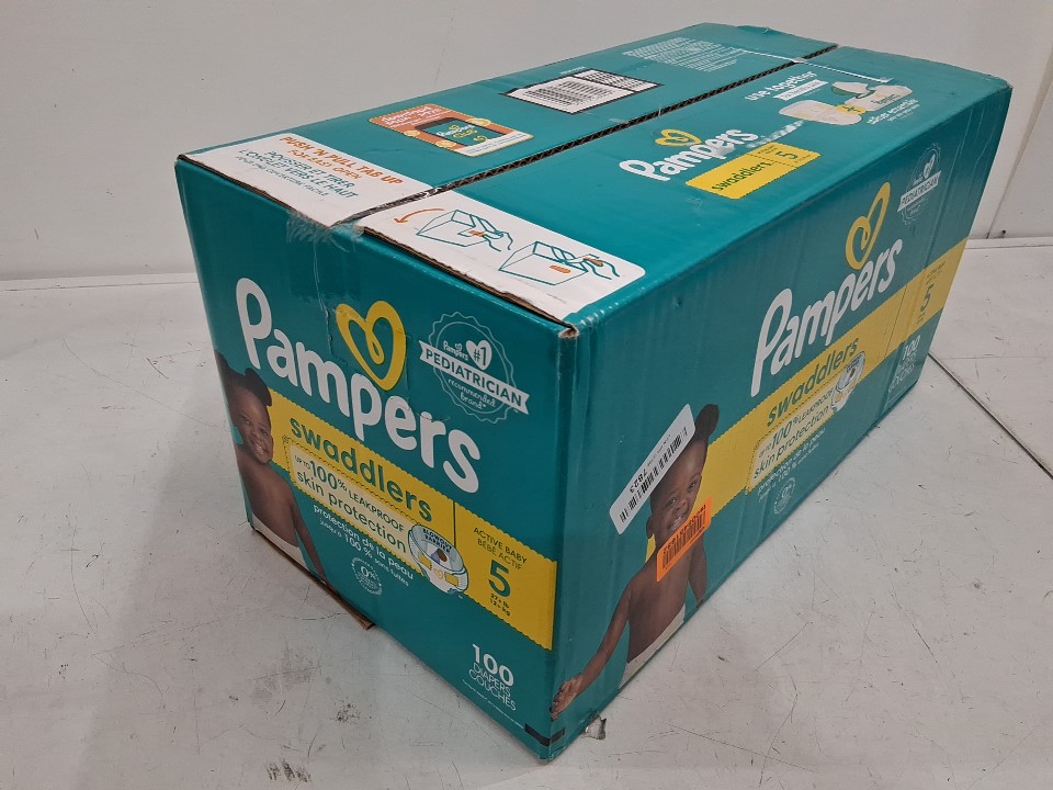 100PK PAMPERS SWADDLERS up to 100% LEAKPROOF BABY DIAPERS - SIZE 5