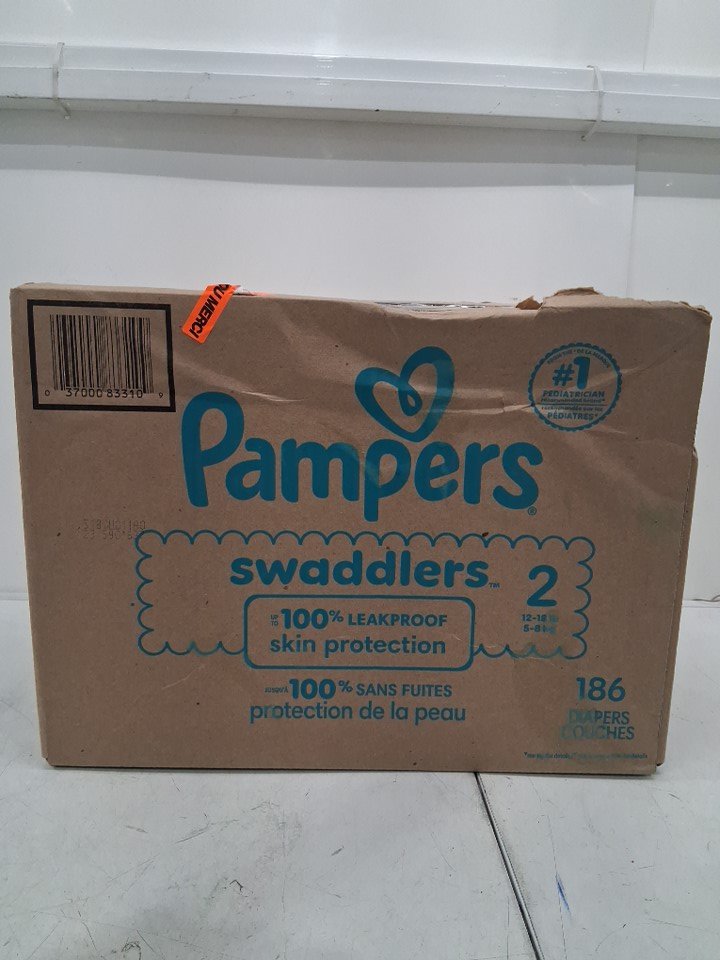 186PK PAMPERS SWADDLERS DISPOSABLE DIAPERS - SIZE 2