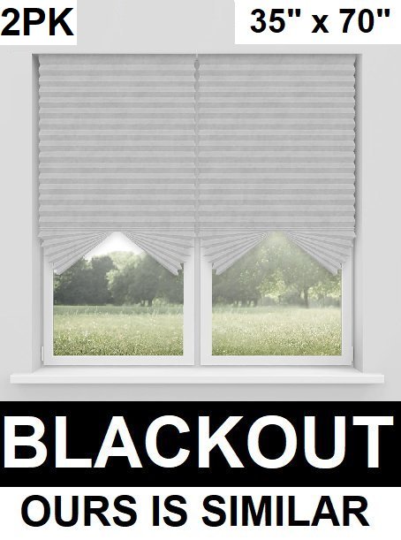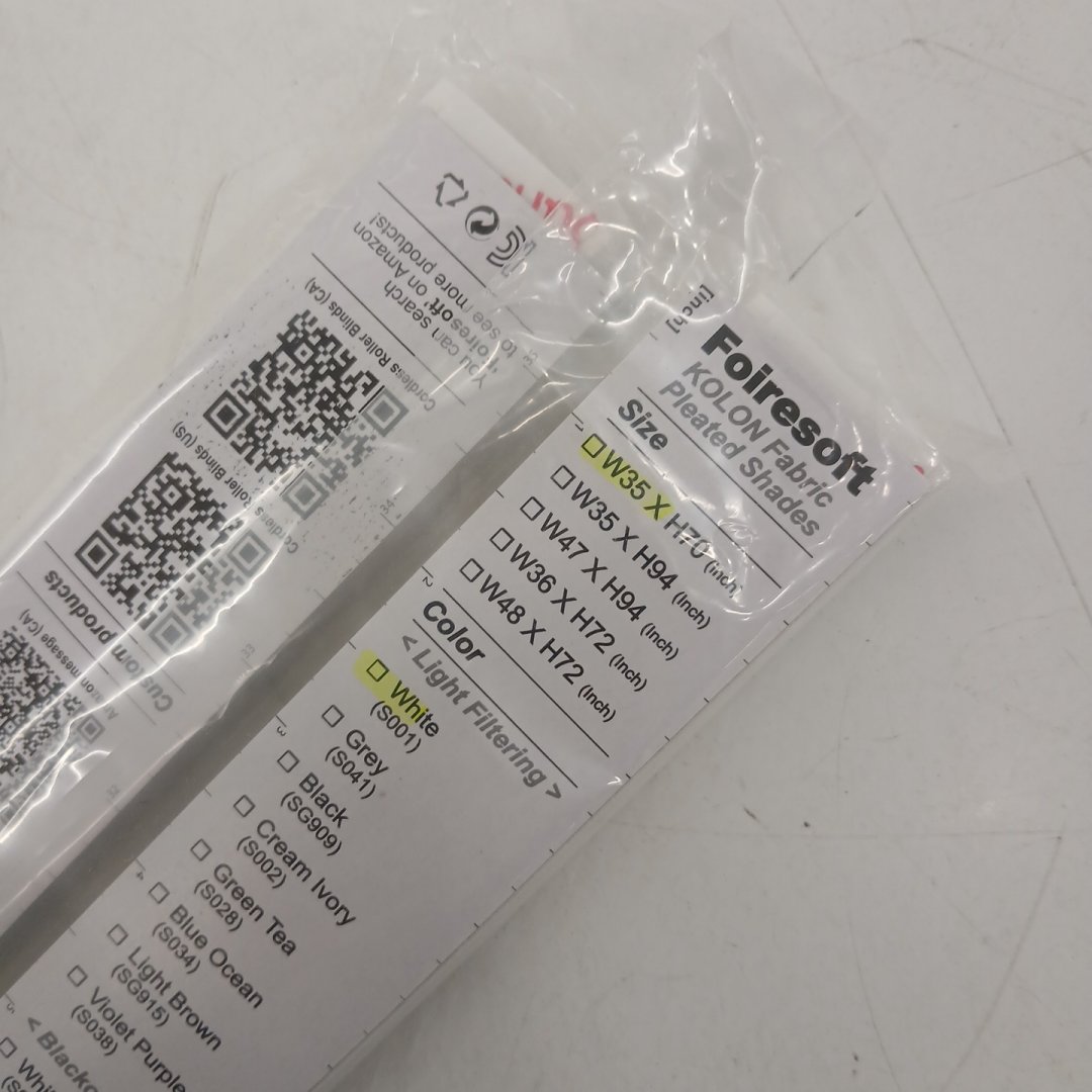 2pk foiresoft blackout self-adhesive pleated fabric shades - 35" x 70" - white (model: s001)