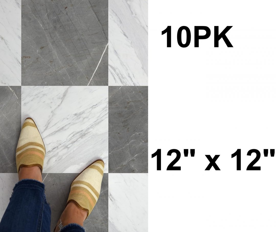 10PK Chris Loves Julia FloorPops square Bonneville Peel & Stick Floor Tiles Water resistant and washable - 12" x 12" - white/cream (model: FP4421)