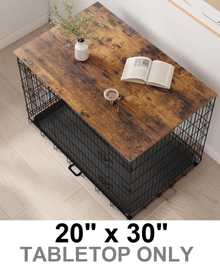 Piskyet WOODEN TABLETOP Dog Crate KENNEL Topper - 20" X 30" - RUSTIC BROWN (MODEL: 30IN-DB/SL-30IN-DB-FG-01)