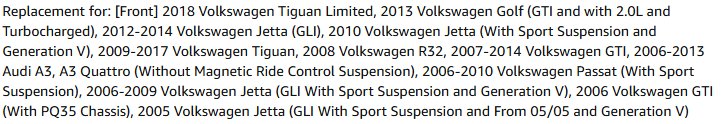 TMC Front Suspension Strut - FITS VARIOUS VOLKSWGON AND AUDI MODELS - BLACK - (MODEL: 78-72312)
