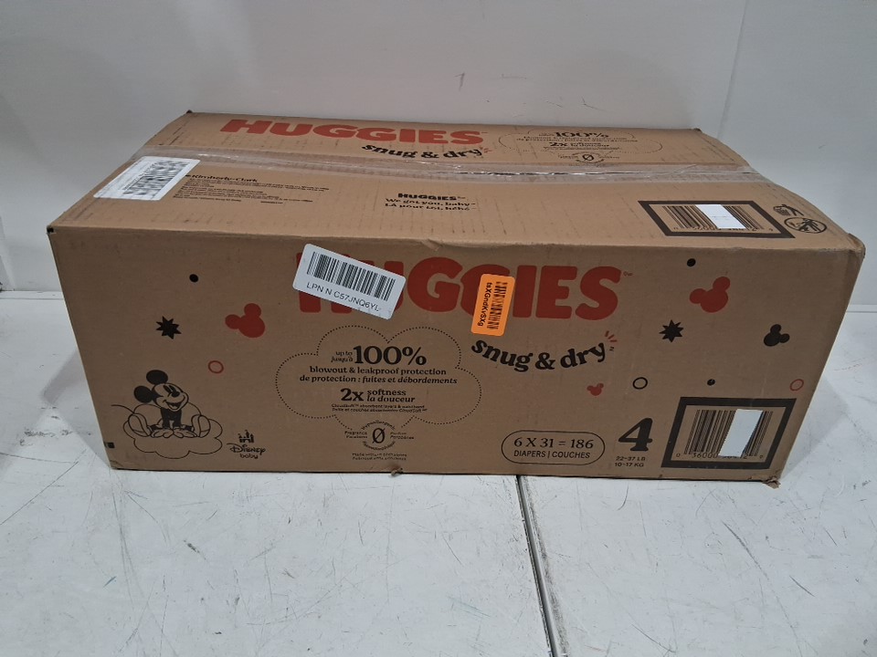 186pk huggies snug and dry diapers - size 4 - 22lb to 37lb - disney mickey mouse