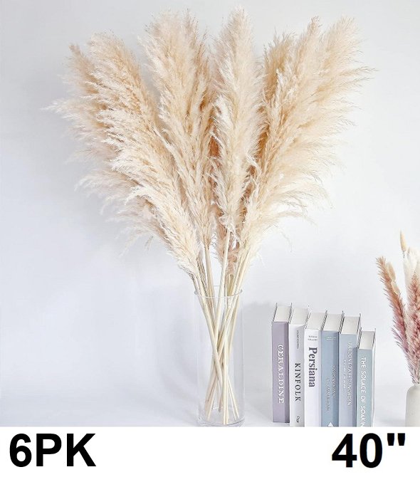 6pk bannifll natural tall decorative boho pampas grass stems for home decor - 40" - natural