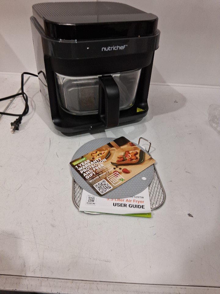 nutrichef 8-IN-1 glass air fryer with clear fry bowl for best cooking results - 5.8qt - grey/clear (MODEL: ncaf539tb)