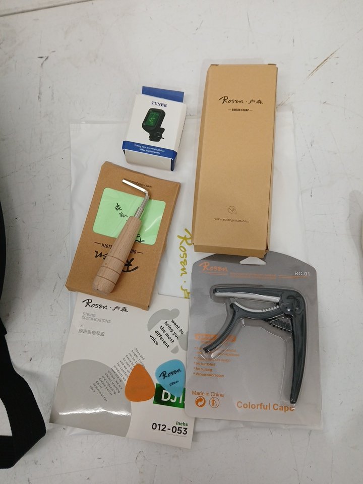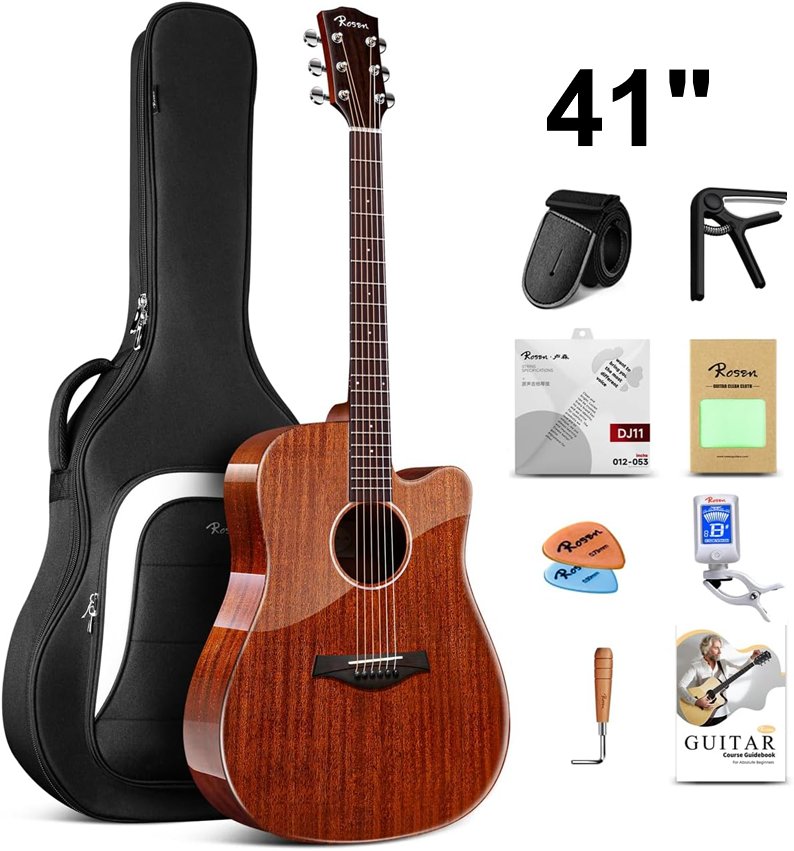 Rosen G31 Dreadnought Acoustic Guitar Starter Kit with Gig Bag, Tuner, Strings, Strap, and Picks - 451" - Solid Mahogany with Gloss Finish