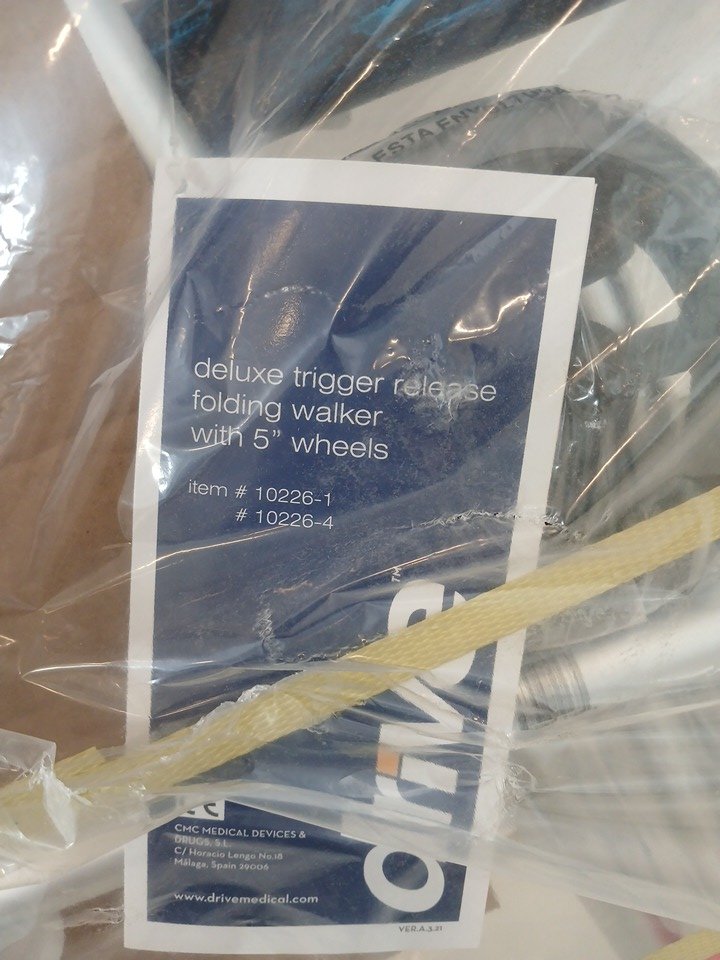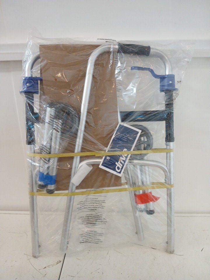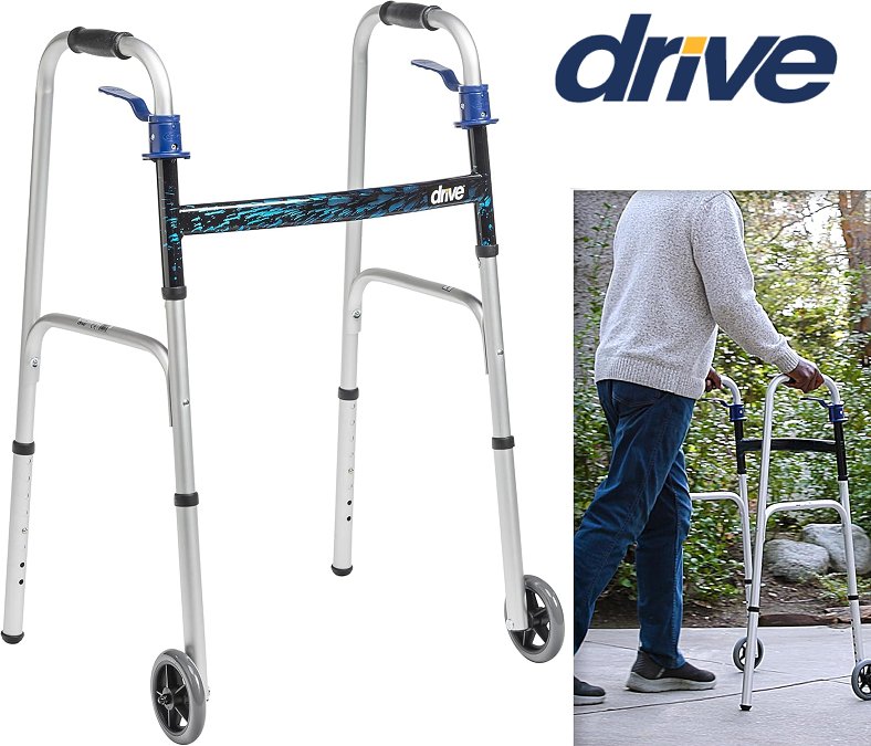 Drive Medical trigger release folding walker - 16.75" x 25" x 18" - brushed steel (model: 10226-1)