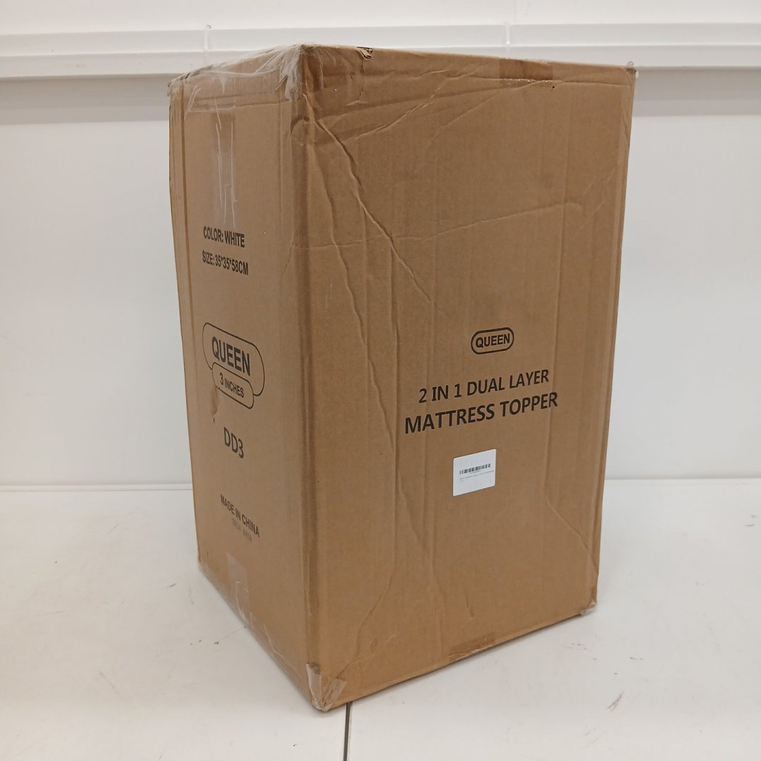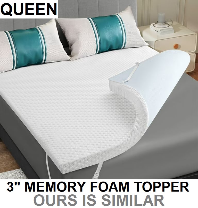 2-IN-1 DUAL LAYER MEMORY FOAM MATTRESS TOPPER, 3" THICK - QUEEN - WHITE